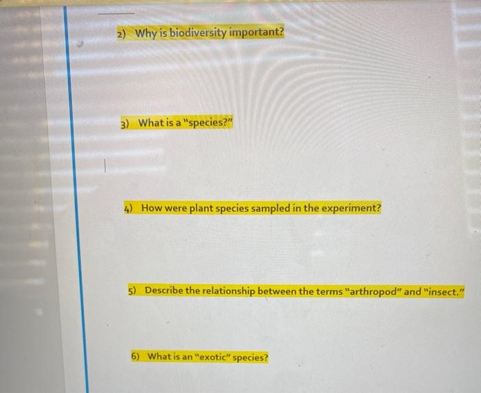 Solved 2 Why Is Biodiversity Important 3 What Is A Chegg Com